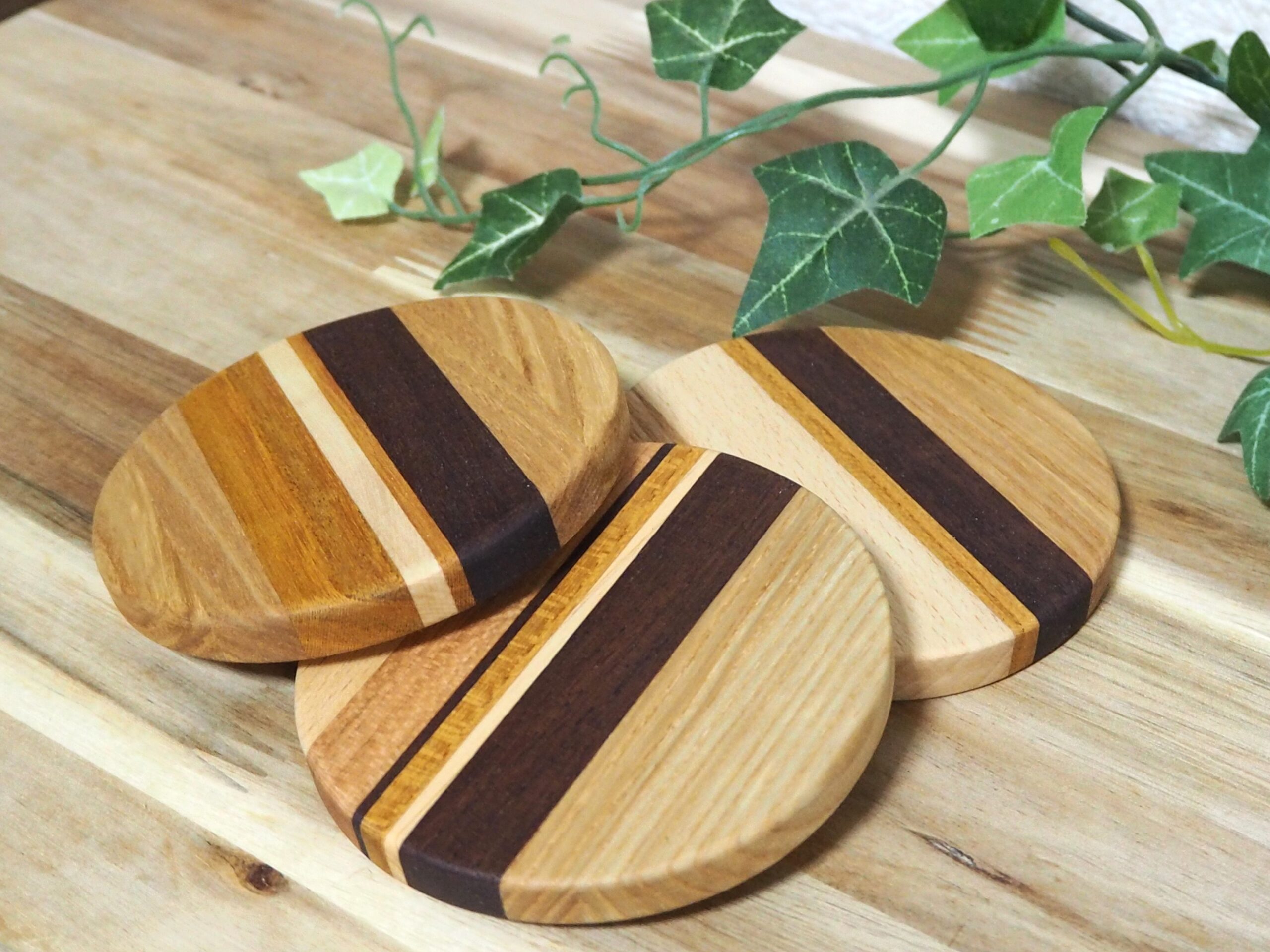 そして、テープカバーは、ウォールナット、ケヤキ、タモなどを使ったストライプ柄の寄木にしました🌳